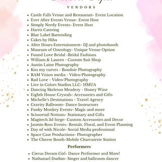 Our adventure begins in the Hall at check-in with samplings of treats from a local caterer, baker, and bartender (must show ID), which you may enjoy while listening to beautiful music as you visit our 20+ curated vendors. We pride ourselves on finding local, unique vendors that are open hearted and open minded to all forms of love, lifestyles, cultures, skintones, and genders, so we hope you…